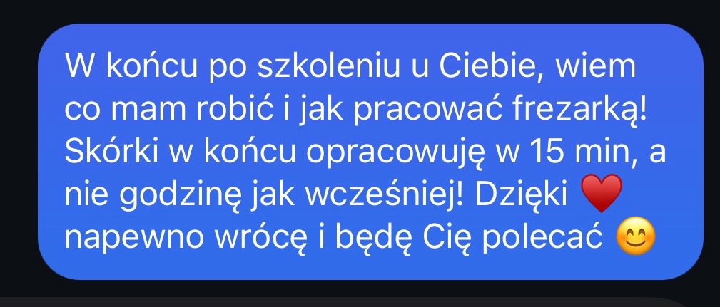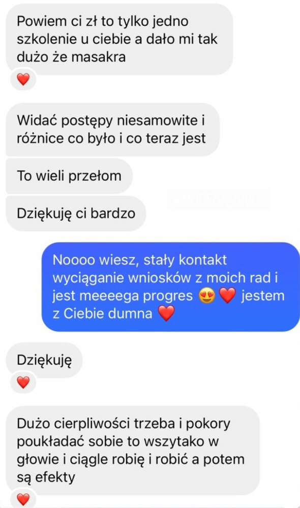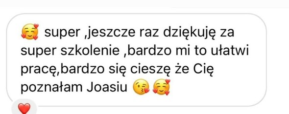 Po szkoleniu dostajesz zadania domowe i analizujemy razem Twoje postępy. Wysyłasz mi KAŻDĄ swoją pracę i konsultujesz ze mną KAŻDY problem związany z przeprowadzonym szkoleniem. I tak aż do 3 miesięcy po szkoleniu.